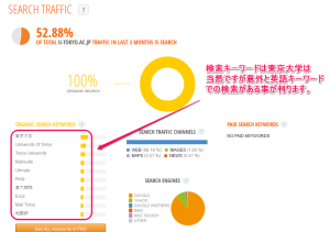 検索キーワードを見てみると「東京大学」が一番なのは当然だと思いますが、2番手以降は英語のキーワードが占めています。