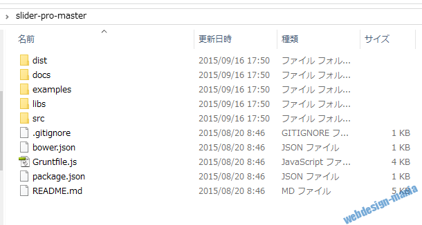 必要なのはslider-pro.min.css、jquery-1.11.0.min.js、jquery.sliderPro.min.jsの3つのファイルになります。